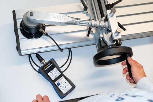 Der Drehmomentmesser besteht aus einem Handmessgerät und einem externen Drehkraftaufnehmer. Der Torsionsaufnehmer wird über ein 1,5 m langes Kabel mit dem Drehmomentmesser verbunden und ermöglicht somit einen Einbau in einen Teststand oder die direkte Montage an einem Prüftisch. Das Drehmoment-Messgerät wird justiert ausgeliefert, sodass direkt mit den Kontrollmessungen begonnen werden kann. Optional wird zu dem Drehmomentmesser